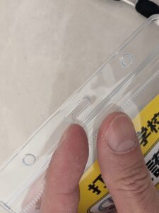 チャックを開き、【オモテ】に「保護者」、【ウラ】に「巡回中」が来るように、保護者証カードを封入してください。