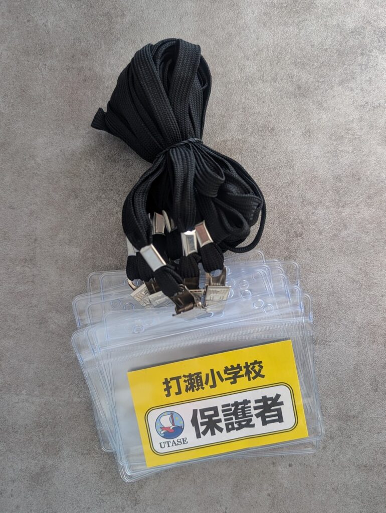セット済みの保護者証10枚をまとめて、ストラップ部分を折って束ねます。